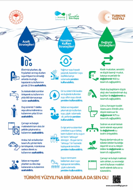 Milli Eğitim Bakanlığı ile Tarım ve Orman Bakanlığı arasında iş birliği içinde yürütülen; iklimdeğişikliğine karşı direncin artırılmasına yönelik su verimliliği uygulamalarının yaygınlaştırılmasınınhedeflediği kapsamında, su yönetimi çalışmalarıyla su"Su Verimliliği Seferberliği Projesi" verimliliğinin bir kültür haline getirilmesi için gerekli faaliyetler sürdürülmektedir.