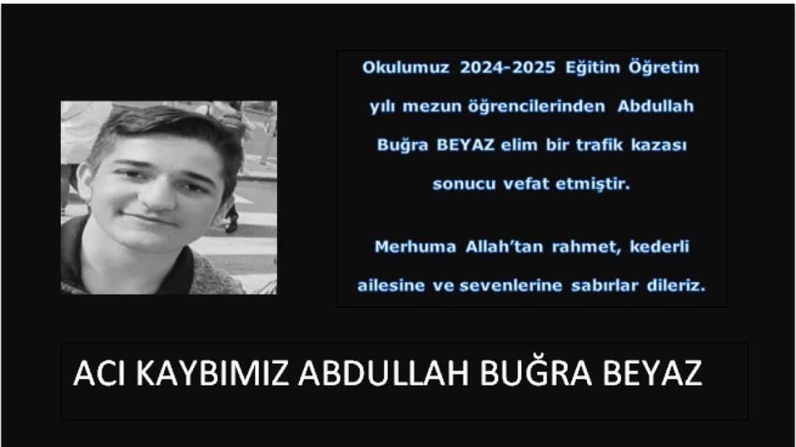 Başımız Sağolsun. Öğrencimiz Abdullah Buğra BEYAZ’ı kaybettik.